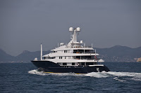 Her American owners have clamped down on all information and have prohibited the yard and the yachts designers from issuing any information to the public. Reymond Langton Design is acknowledged as the designers of this and her part sister yacht Eminence who is also on the Riviera and was seen yesterday inside Port Vauban Antibes. Andrew Langton of the designers confirmed his firm was the stylists responsible for the exterior of the yacht for the shipyard, but said, “The interior was designed by the owner’s personal designer whom we do not know. We were not involved with the build andI know from the yard that this is an extremely confidential project.”