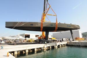 The new 30 metre sloop Y3K from Wally has been craned into the water at Ancona. A development of the current Y3K she has been built for an owner who is a truly passionate sailor and enjoys cruising with his family. He will use this boat to race competitively as he has done with his previous yachts and the yacht is expected to make her first appearance at the Maxi Yacht Rolex Cup in Porto Cervo, September 6-12.