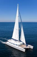 A carbon fibre catamaran with an significant beam of 14 metres (45.9ft), Necker Belle provides accommodation for eight guests in a master suite, a double cabin and two twin/double convertible cabins, all with ensuite shower rooms. A further two guests can be accommodated in the main cabin’s lounge area which converts to a double cabin. Her contemporary interior is simple yet sophisticated, epitomising ‘beach house’ living with that Caribbean feel.