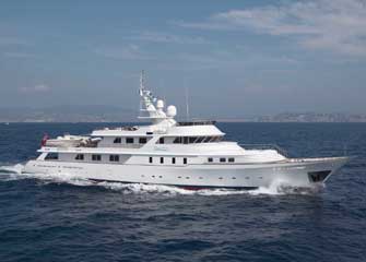 This major refit the superyacht underwent in 2005 resulted in a vastly improved yacht: improvements included the addition of a sloping transom with built-in stairs for easy access to the generous swim platform, a complete remodelling of the sundeck and a comprehensive renovation of interior spaces. She has a unique layout offering three staterooms on the main deck (full-width master and two VIP’s) and four staterooms on the lower deck (two doubles and three berth cabins) and can accommodate up to 16 guests. Her lounges and deck areas are spacious and ideal for entertaining and she benefits from the addition of a gym on the upper deck, and flat-screen TV’s throughout.