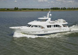 The yacht is fitted with Naiad zero-speed stabilizers and atop the aluminium superstructure is the substantial flying bridge, part of the designers clear policy to maximize the pleasures of alfresco living onboard. The interior offers spacious accommodations for the owners and six guests. The master stateroom boasts a large walk-in closet of. There is also a VIP stateroom plus two guest suites, all with their own bathrooms.