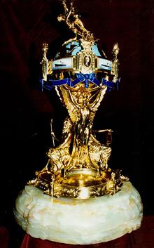 Subsequently Destriero a 68 metre superyacht was constructed at the Fincantieri yard in Italy in 1992 with a view to winning the Trophy. She was chartered by the Yacht Club Costa Esmeralda, whose patron is the Aga Khan, with the intension of capturing the Trophy from the British.