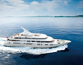 Additional guest cabins include a double-depth lateral VIP suite on the main deck and six large lower deck suites, all with marble bathrooms, handmade Italian leather and raw silk.
