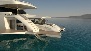 At a gathering at the Monaco Yacht Show, journalists were shown the early foundations of a 46 metre version that has the same ability to unfold sections of the yacht so as to make them more user friendly when at anchor