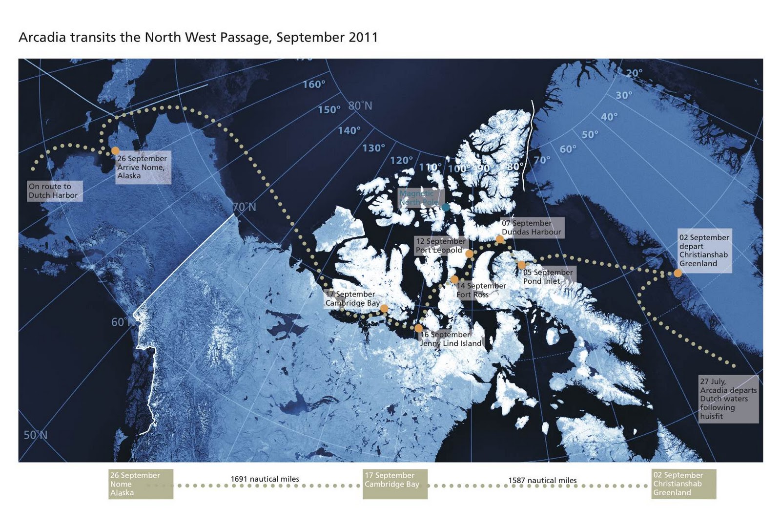 Arcadia’s voyage covered a total of 3,278 nautical miles, of which 1,587 were completed between Ilulissat and Cambridge Bay, and a further 1,691 between Cambridge Bay and Nome, Alaska.