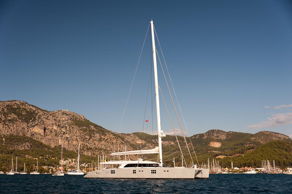 They have brought us out to Gocek to see not one but two of their big cats. The impressive Che at 34.7 metres and the slightly smaller Ipharra at just 31 metres.