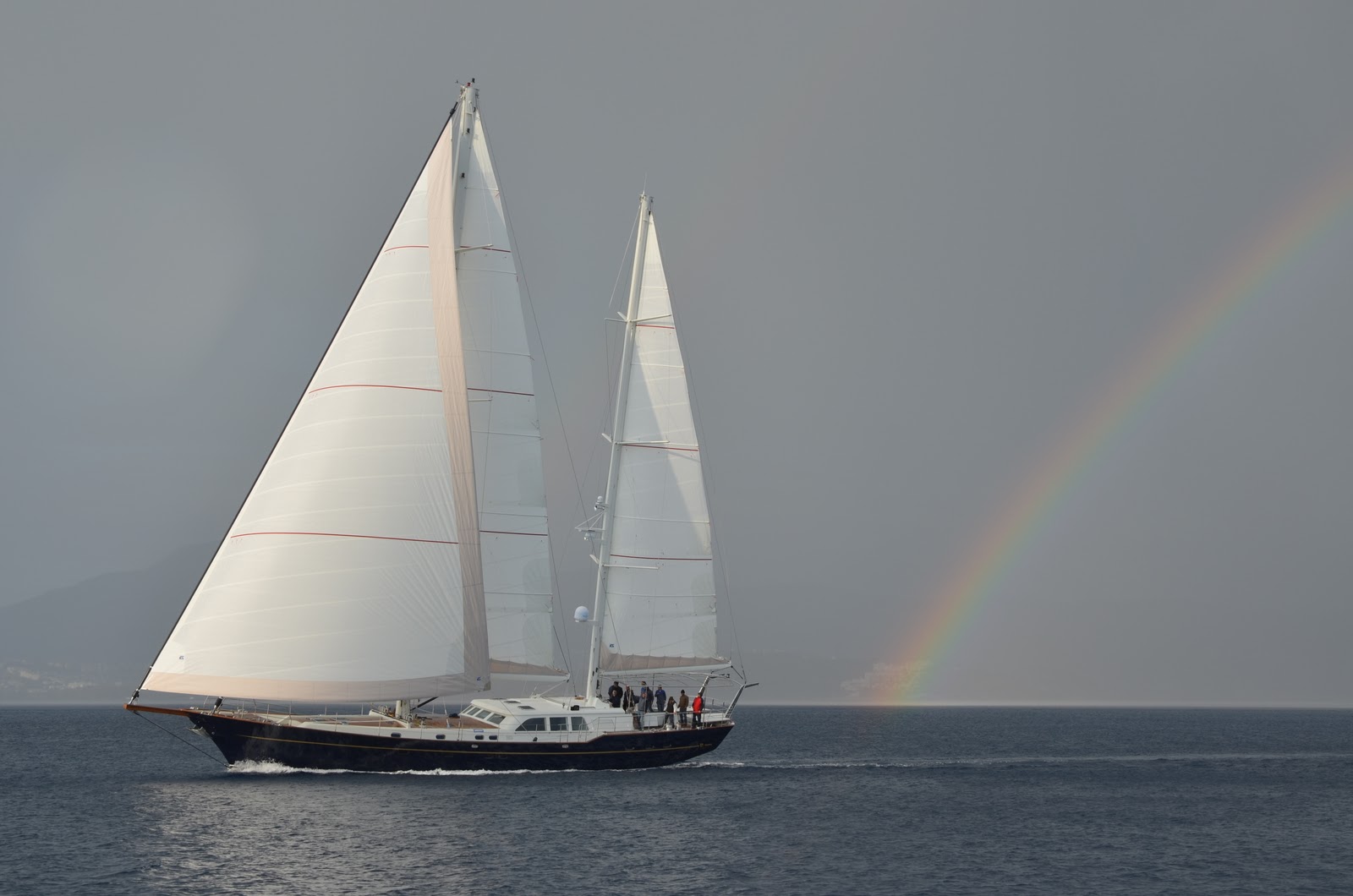 A large lead filled bulb at the bottom of her keel provides stability and resistance to heeling and her white sail area is 519 sq m.