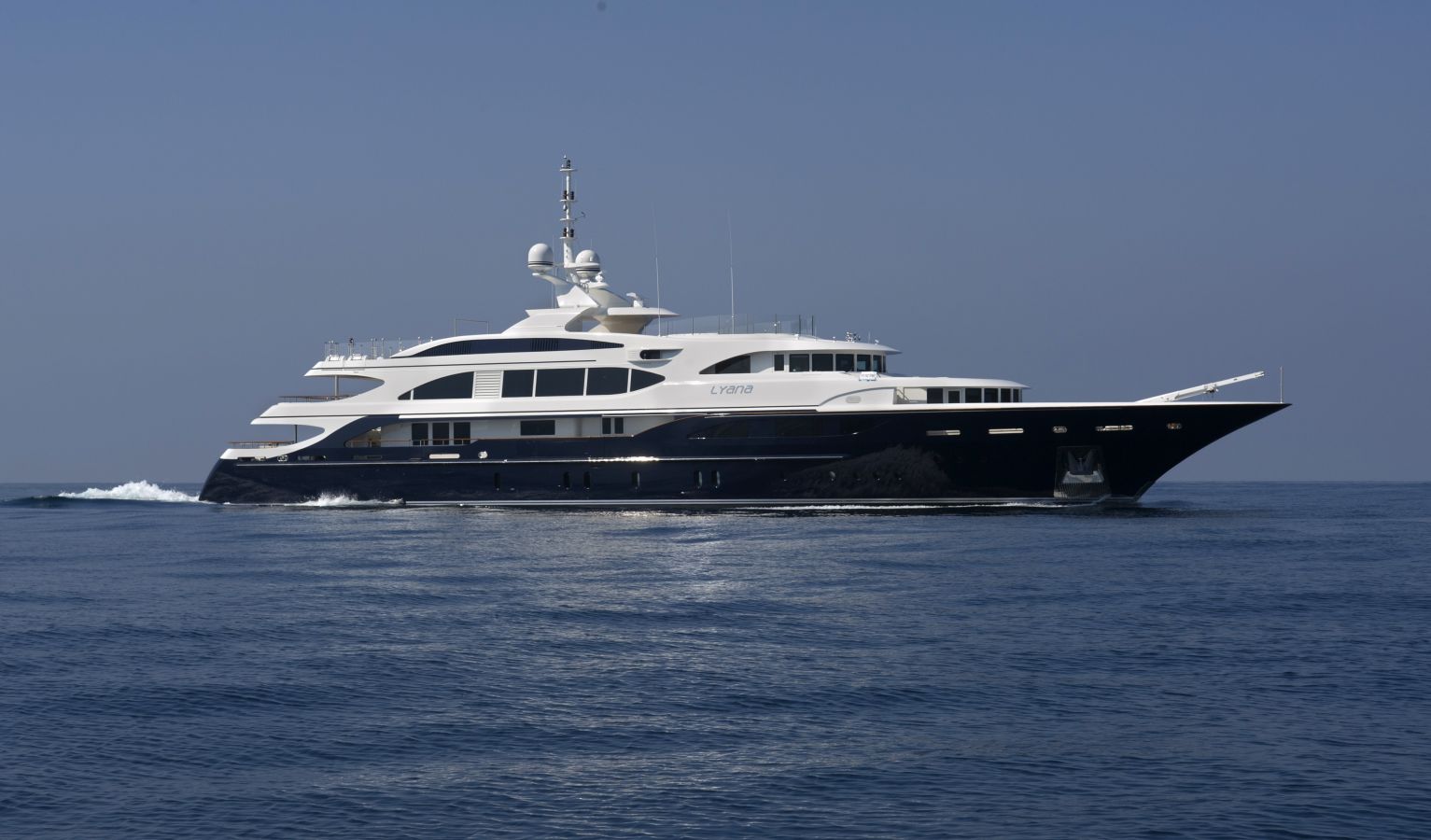 Launched in Livorno in May 2011. Lyana is 60 metres long and features navy blue steel hull with a white aluminum superstructure.