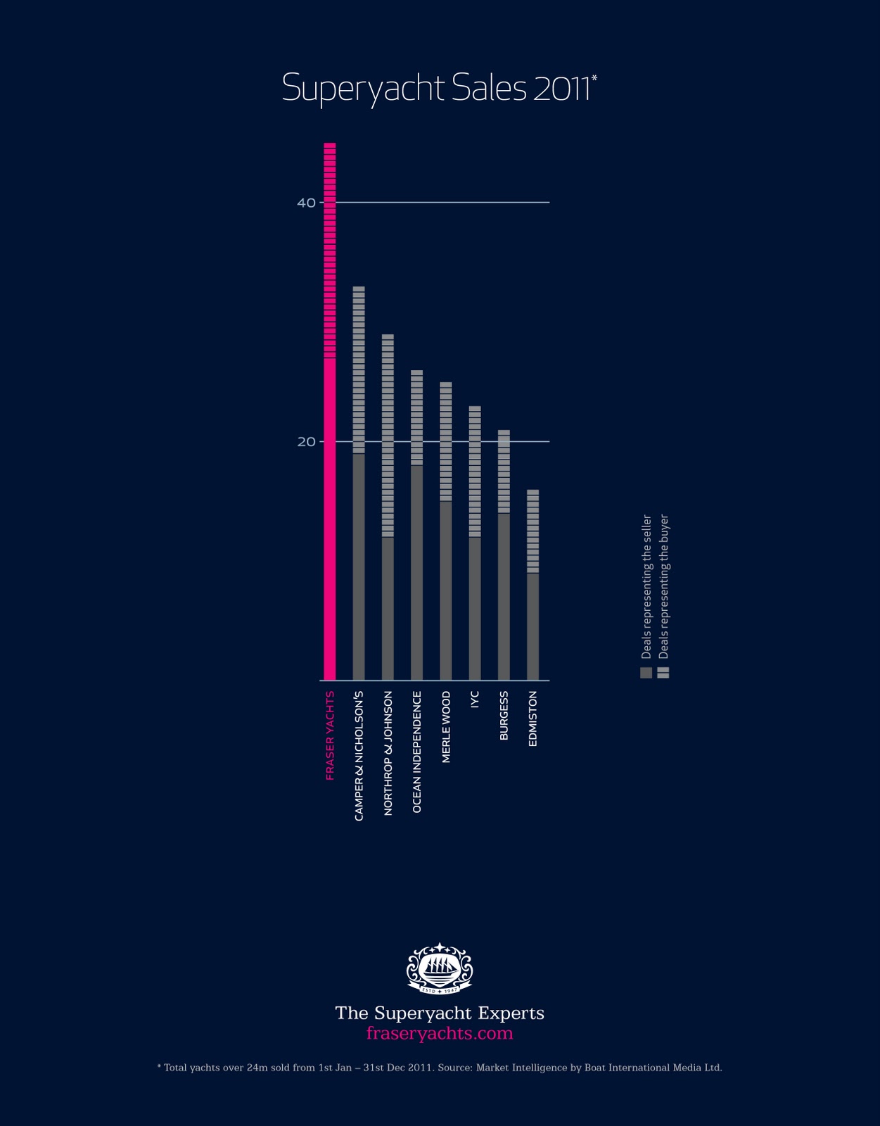 Fraser Yachts lead the field in superyacht brokerage sales during 2011 with sales statistics gathered for the year showing the company had the largest share of the superyacht market.