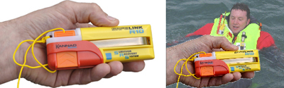 It can also be fitted to the lifejacket and a flashing LED light aids location at night. The R10 SRS will transmit continuously for up to 24 hours and has a seven year battery storage life.