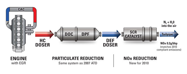Selective Catalytic Reduction (SCR) is a method of converting harmful diesel oxides of nitrogen (NOx) emissions, by catalytic reaction, into benign nitrogen gas and water. SCR can deliver near-zero emissions of the greenhouse gasNOx, an acid rain and smog-causing pollutant in modern diesel engines.