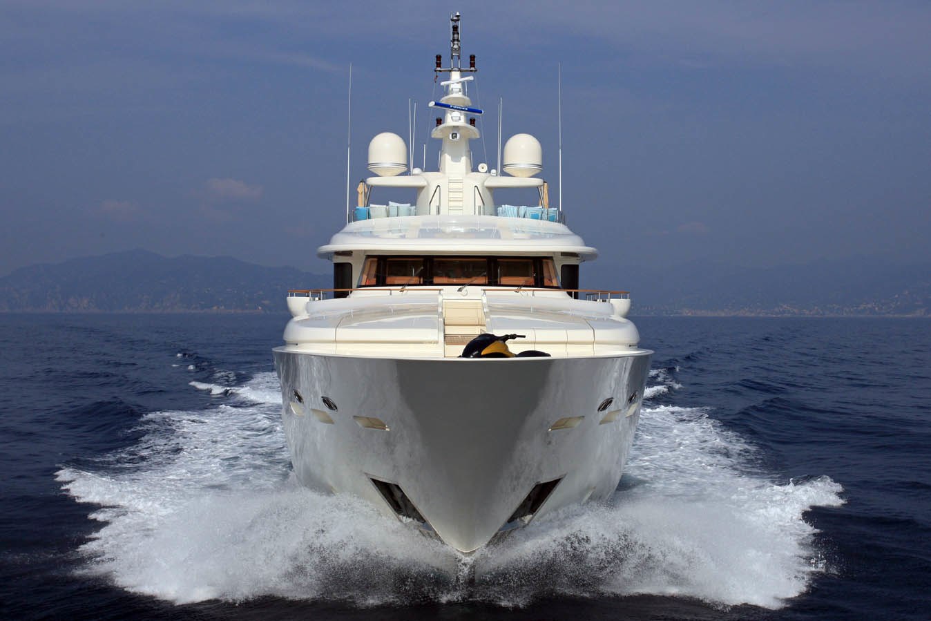 Large windows flood the spacious modern interior with natural daylight. She can accommodate up to eleven guests in five staterooms. The owner’s full-beam cabin is located on the main deck and includes a study and an outdoor balcony. She has excellent range of water toys including eighteen-foot Castoldi RIB tender, rescue boat with outboard motor, a Kawasaki Jet-Ski 800 SX-R, Yamaha Waverunner GB 1300R, Seabob Cayago and Segway i2. Waterskis, wakeboards, and inflatable toys (banana, ski-biscuits and trampoline)