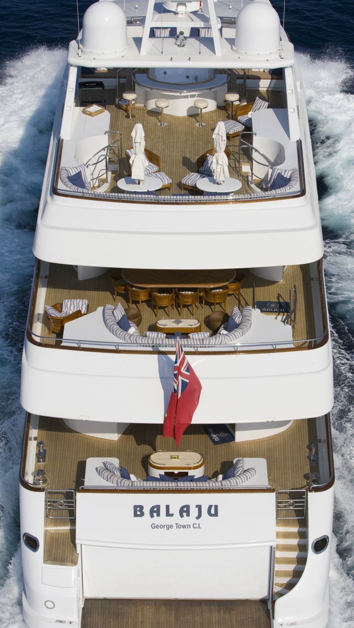 44.5 metre Balaju is one yacht that is available and her sundeck features a luxury whirlpool with a bar and additional lounging areas forward and aft – perfect for entertaining guests for this iconic event for this fabulous event.