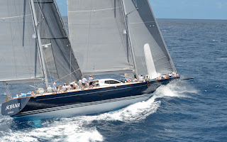Sojana had a cracking race, touching close to 20 knots of boat speed down the windward side of Antigua. Crew work had to be slick, even on a long race, corners come up alarmingly fast and with pressure loads measured in tens of tons, even a small error can be a real problem. One hyper gust sent Sojana’s enormous spinnaker bellowing to leeward, the main sail boom perilously close to digging a sizeable whirlpool into the hissing blue water, the big ketch was pushing hard.