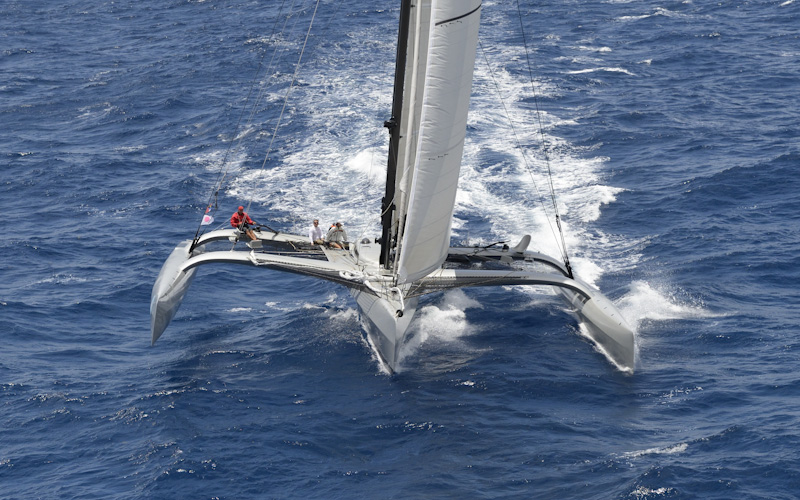 Squally conditions intensified the trade winds to churn up the swell into a foaming powerful sea state with rogue waves reaching over three metres. The feisty conditions off the coast of Antigua caused at least two retirements due to gear failure.