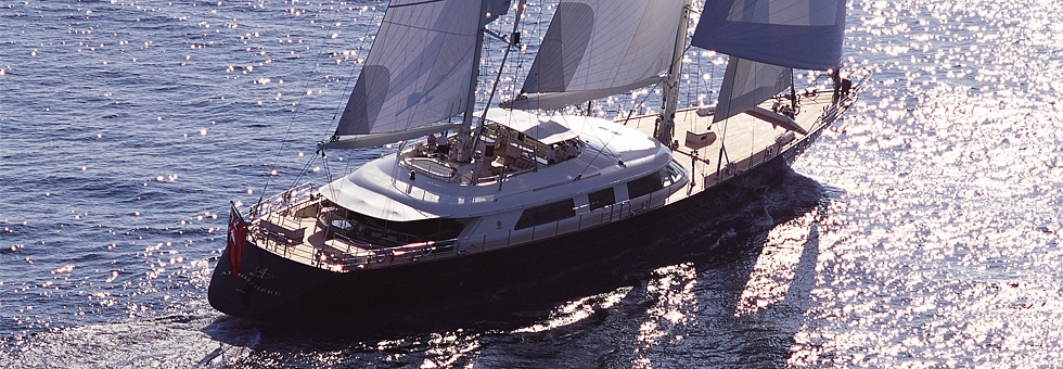 Atmosphere often attends regattas including the Perini Navi Cup as something of a talisman. A beautiful yacht with great deck space, an accomplished chef and the reliable power of motor sailing at its best. After a considerable refit, the ketch is better than ever. The aft cockpit seats twelve for dinner in one of the most romantic settings on sea. Dine to a remarkably high standard and then settle back and watch a film on the outdoor screen. Inside, the scene is a gallery of quality art set within an extremely sophisticated saloon with Hermes fabrics and Perini’s marine theme styling.