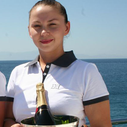 Ukrainian born Stewardess Olga joined Jasmin in 2010 and transferred to E&E in 2011. 32 years old she has 7 years of experience on several cruise lines and private yachts. She is a graduate from Odessa Pedagogical University. She speaks fluent English, Russian and Ukrainian. With her sociable and communicative personality and always smiling face she will be ready to welcome the guests on E&E.