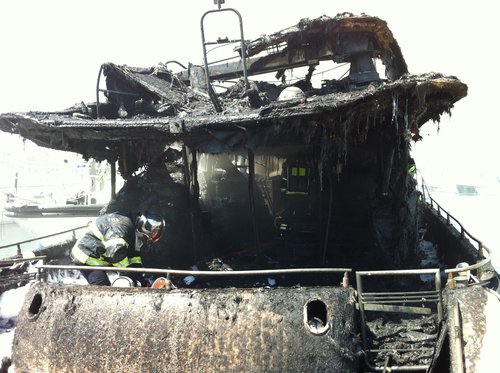 Nice Matin the local daily newspaper in the south of France is reporting that the 19m yacht ‘Pride of Stavanger’ caught fire yesterday on 10 May and was very badly fire damaged on the Quai de Rambaud in the centre of the Port of Antibes.