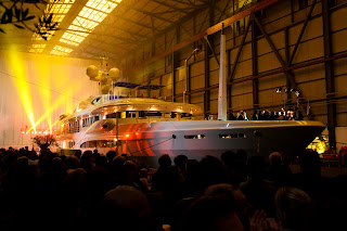 More than 600 people gathered to witness a musical Christening of the 65 metre Sea Rhapsody christening, at the Amels shipyard in Vlissingen, Holland