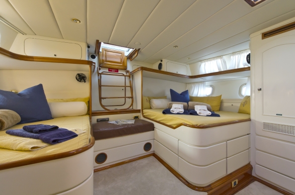 - Accommodation for 6 guests in 1 double and 2 twin cabins