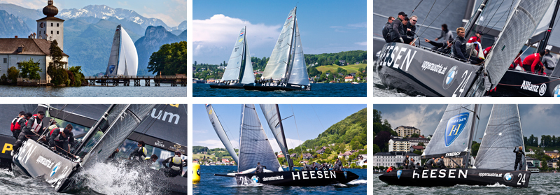 Team Synergy sponsored by Dutch superyacht builder Heesen has stayed on top of the season’s rankings in that format by winning first place in the match race and sixth place in fleet racing at the RC44 – Austria Cup, which was held in Gmunden, Lake Traunsee from 30th May to 3rd June.