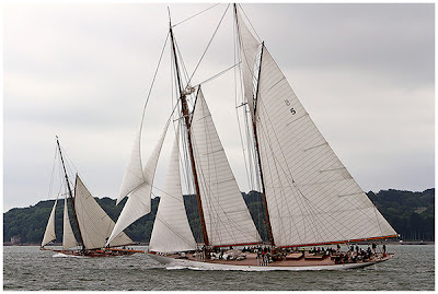 We have been invited to sail on board Mariette this Saturday as she races competing in the Westward Cup. Looking at the way the programme has gone so far and looking at the weather we are not sure we will be able to. Nevertheless nothing can dampen the excitement in Cowes as theses three old and magnificent yachts go ahead to head