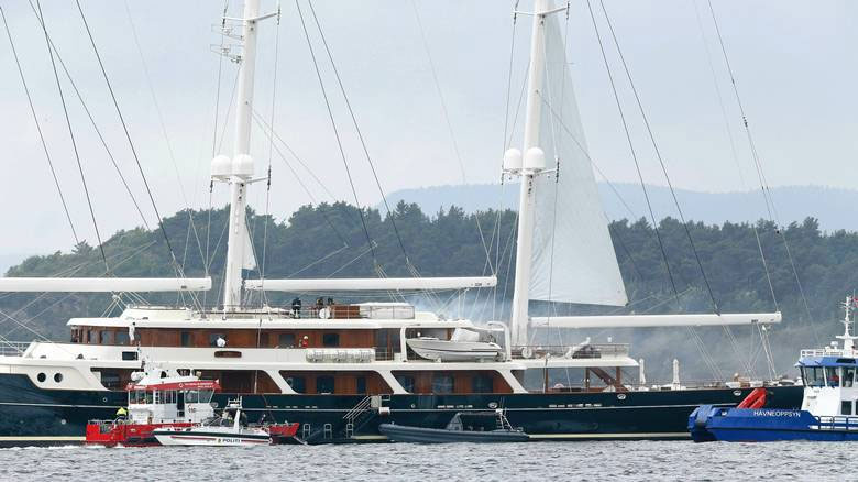 Fifteen fire fighters from Oslo’s fire and rescue service attended the blazing yacht as she lay at anchor and stayed at the scene for over five hours