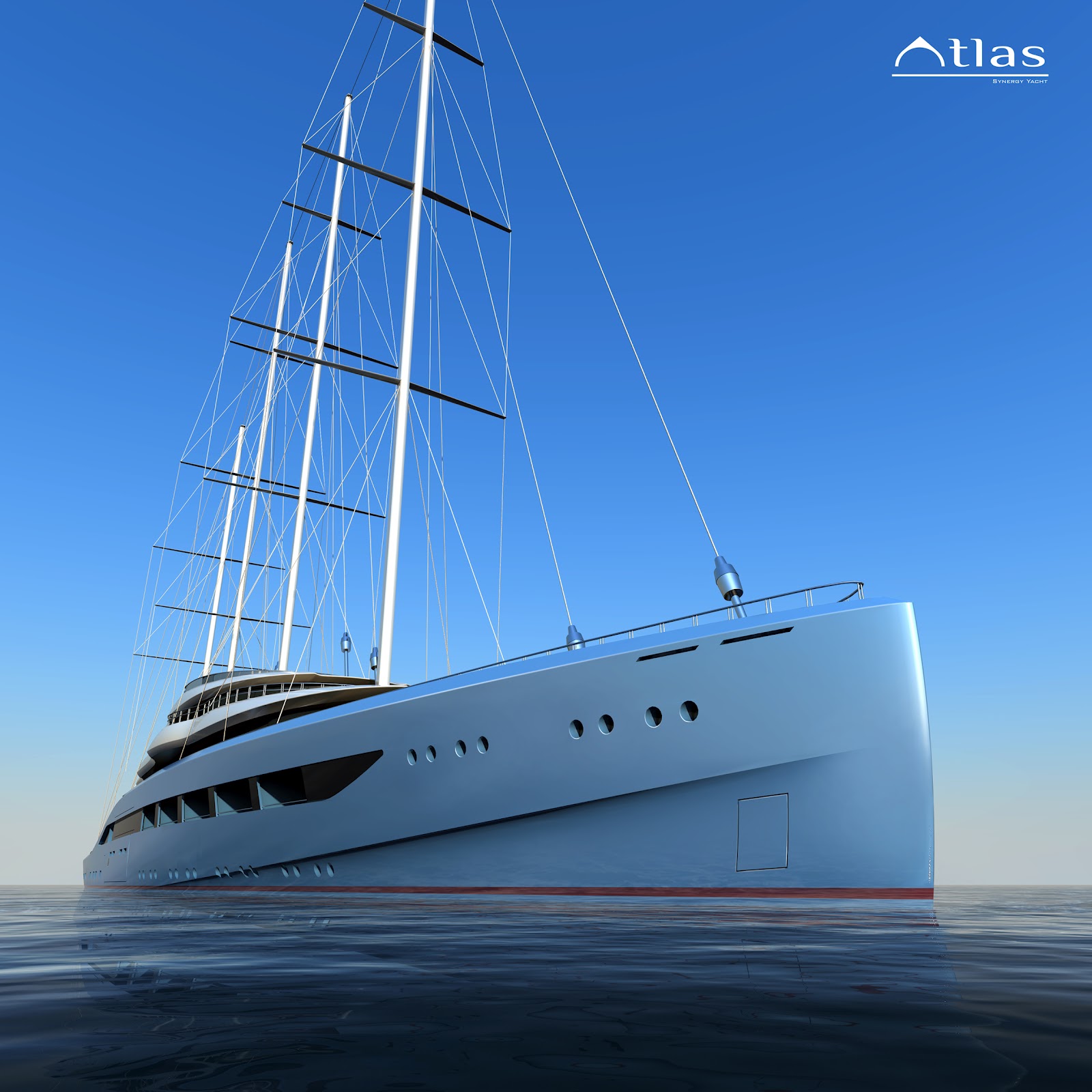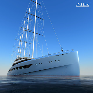 Poject Atlas has been designed to be used with a combination of motor and / or sails, exploiting the obvious fuel saving benefits. The contemporary 110m 5 deck super yacht form is complimented by the sail arrangement, demonstrating the potential in merging Superyacht volume with the graceful elegance of a sailing yacht.