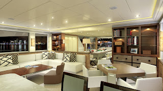 There is wide open deck space on the mid and upper deck plus a large deck space on the Main Deck including a unique lifting platform/beach that lowers the guests and the tender straight from the main deck into the water.