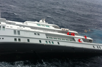 This clear image of shows cushions normally used on deck, floating astern of the yacht. At first thought, this is not unusual, but ask any Captain in command of a super yacht where he would stow deck cushions while on passage in winter, and the answer will undoubtedly be: “below deck” meaning, in all probability, in the Lazerette or beach club.