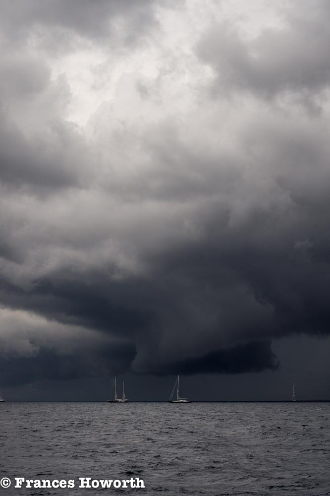 Flashes of lightening and the cracks of thunder and heralded what was to become a washout of a good potential racing on Day 2 of the Perini Navi Cup.
