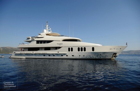 42m (137’9) tri-deck motor yacht Gloria Teresa, launched in 2006 by Spanish Shipyard Group Navantia (ex IZAR). With generous interior living spaces, array of luxury amenities and full selection of watertoys she offers the ultimate in guest comfort.