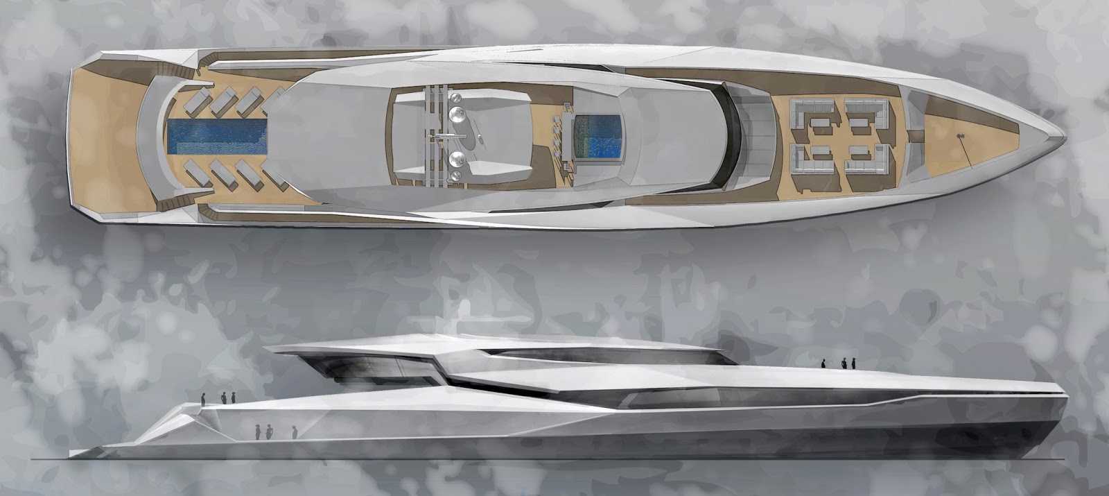 Design Unlimited the British based company that specialises in yacht interior design and exterior styling for both production and custom yachts has unveiled details of a striking new superyacht project