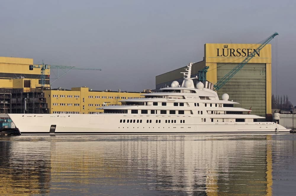 Up until now no one could be truly sure because the ships name boards had been covered up but today Lürssen uncovered the name plates and we learn she is registered in Abu Dhabi, UAE.