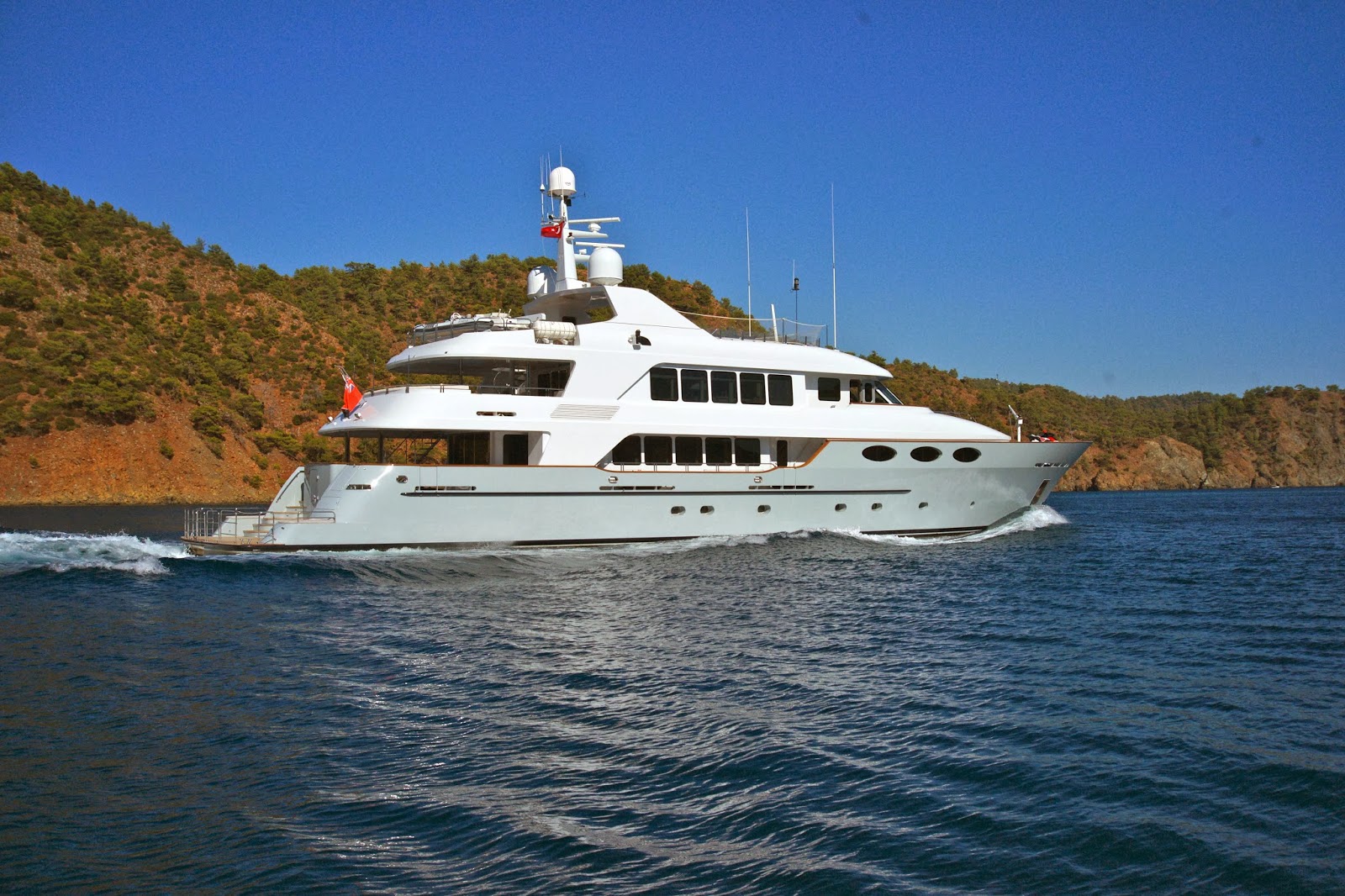 The 45.3 metre motor yacht Keyla was built by Trinity Yachts in 2003. The all aluminium semi- displacement hull and superstructure, is fitted with two MTU/DDC 16V2000 engines, 3,600HP and was refitted at RMK in Tusla Turkey during 2012 and 2013.