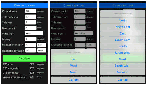 Course to Steer, is a new sailing app developed by Keith Wilkinson which calculates a course to steer to compensate for tide, wind and magnetic compass errors.