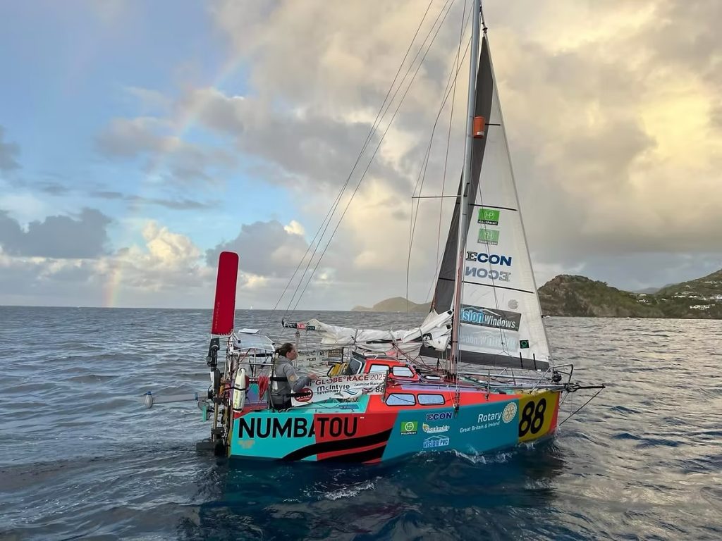 She sails alone aboard a 19-foot boat having set off from Portugal in March 2025. On her home run, she paused for seven days at St Helena.