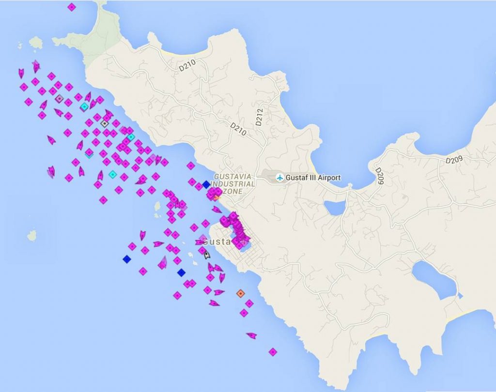 Gustavia Harbour reached extraordinary capacity ahead of New Year’s Eve. Marine Traffic data recorded 327 vessels in and around the harbour.
