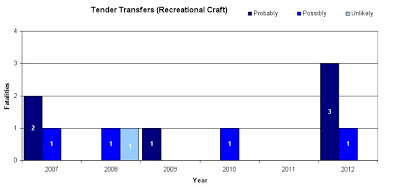 The panel compiling these statistics uses data supplied from Coastguard and MAIB databases and therefore only covers coastal incidents. Other inland tender transfer incidents, where a lifejacket might have saved a life may have occurred during 2012, but these are not included for this exercise.